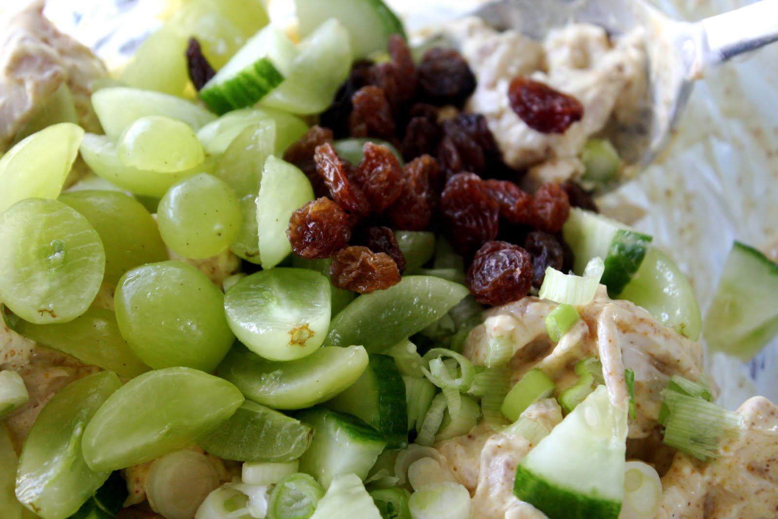 Extras - I used chopped cucumbers, raisins, green onions, chopped grapes